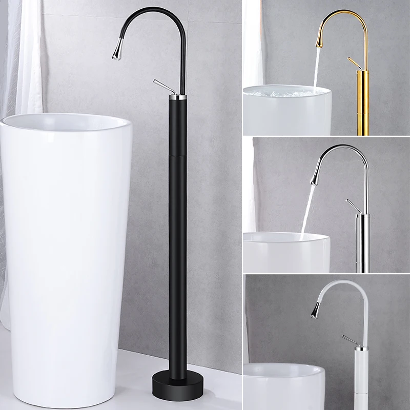 Product Name: Bath Tub Sink Mixers Bathtub Faucets Floor Mounted Black Finish Brass Free Standing Hot And Cold Bath Faucet Set Luxury Gold Tap